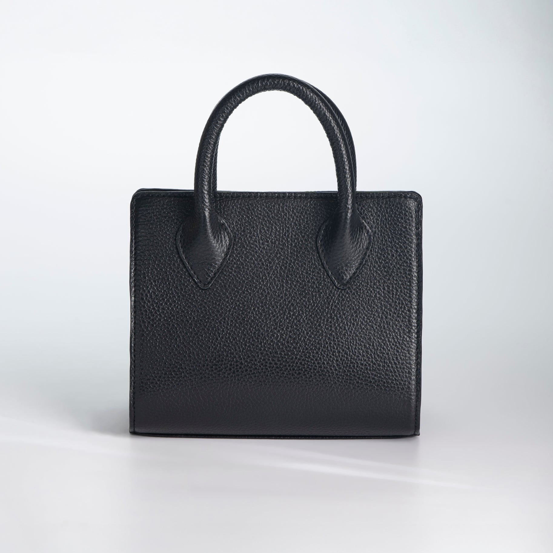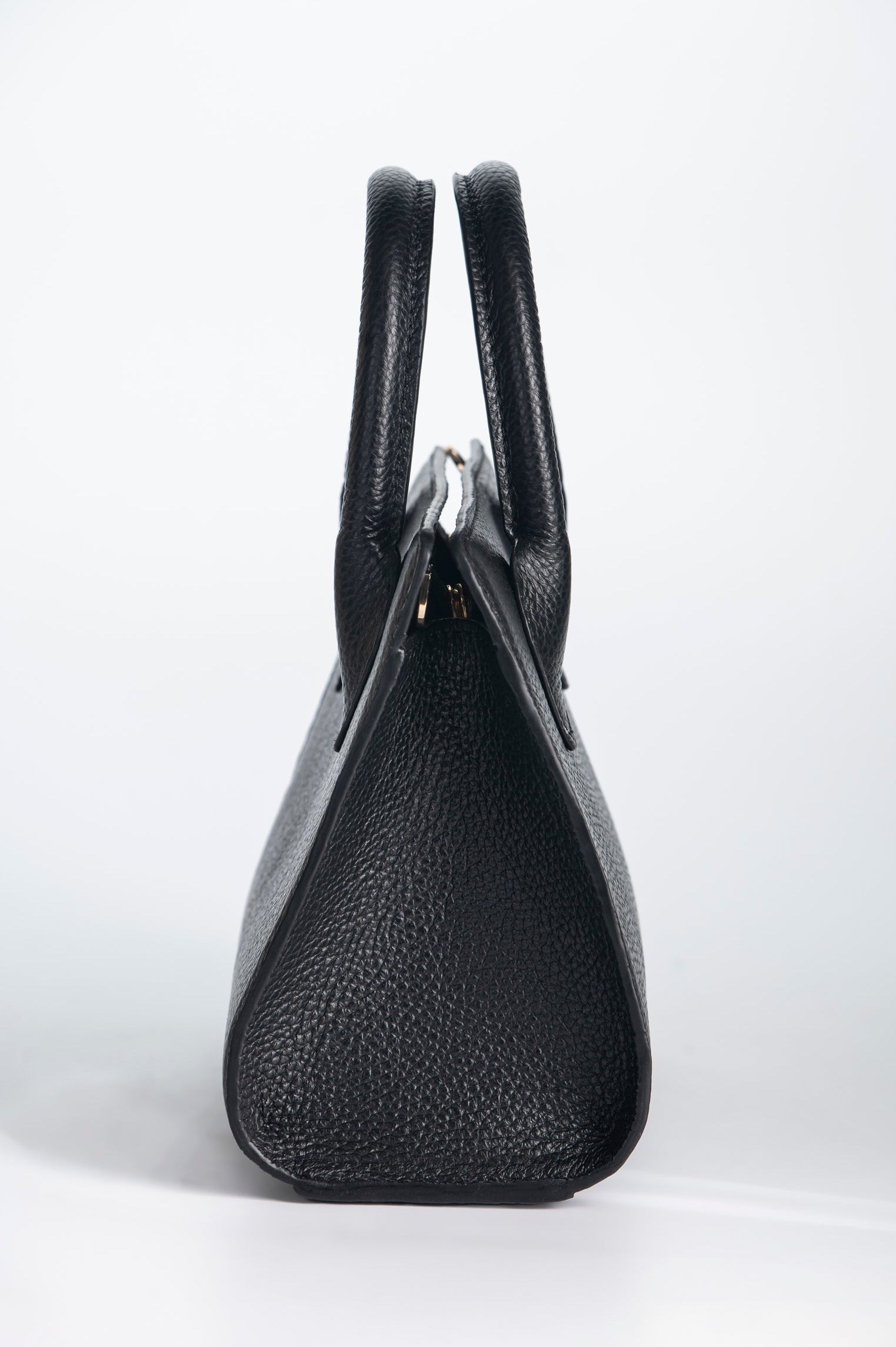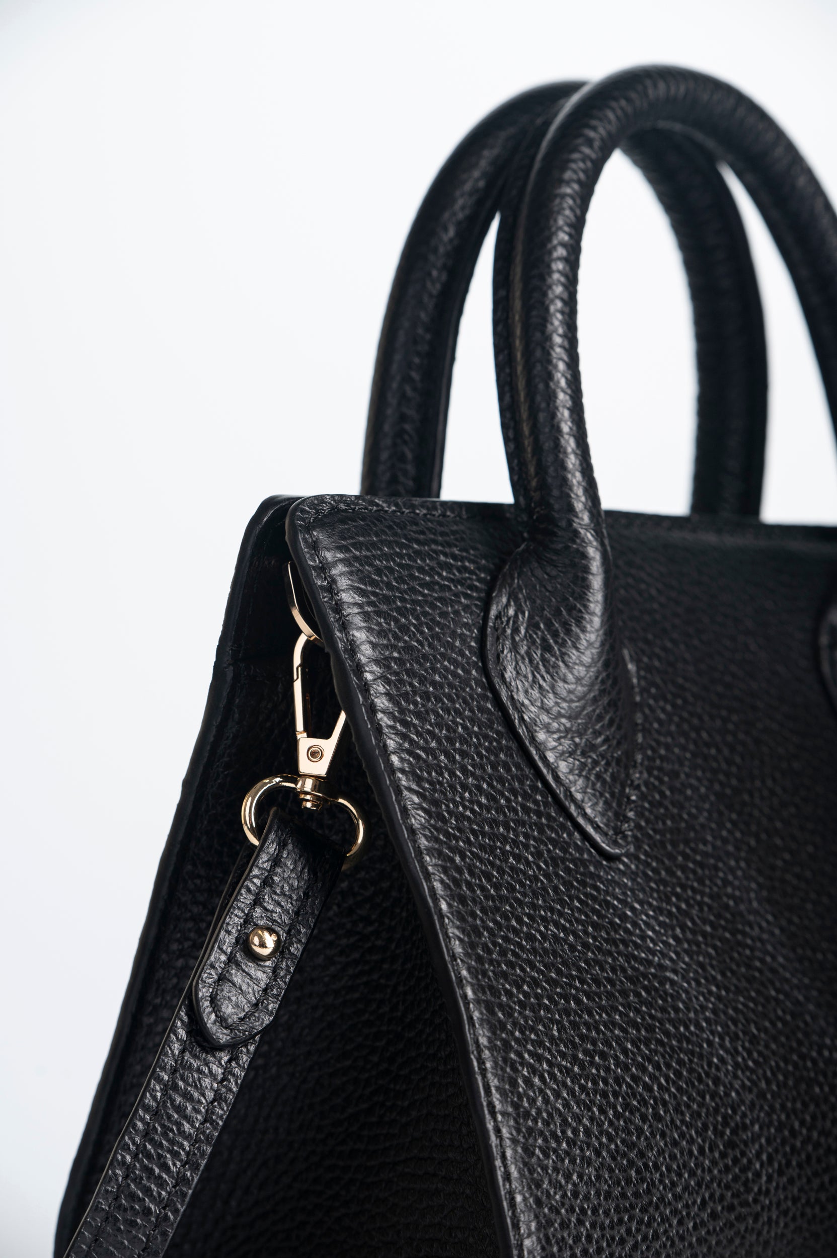 Το μαύρο dollaro δέρμα προσδίδει διαχρονικότητα και σταθερότητα, με διακριτική υφή και καθαρή όψη.
