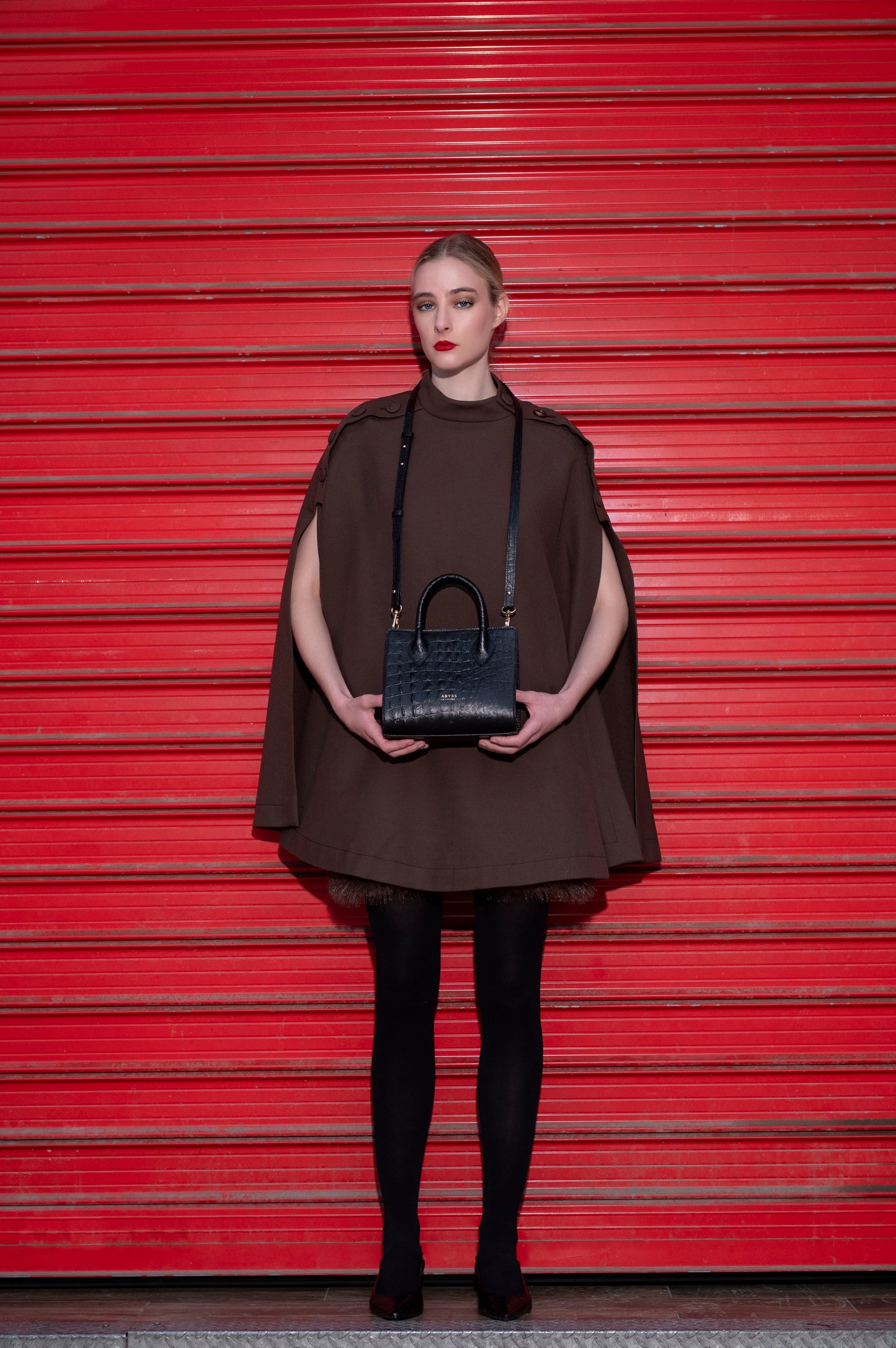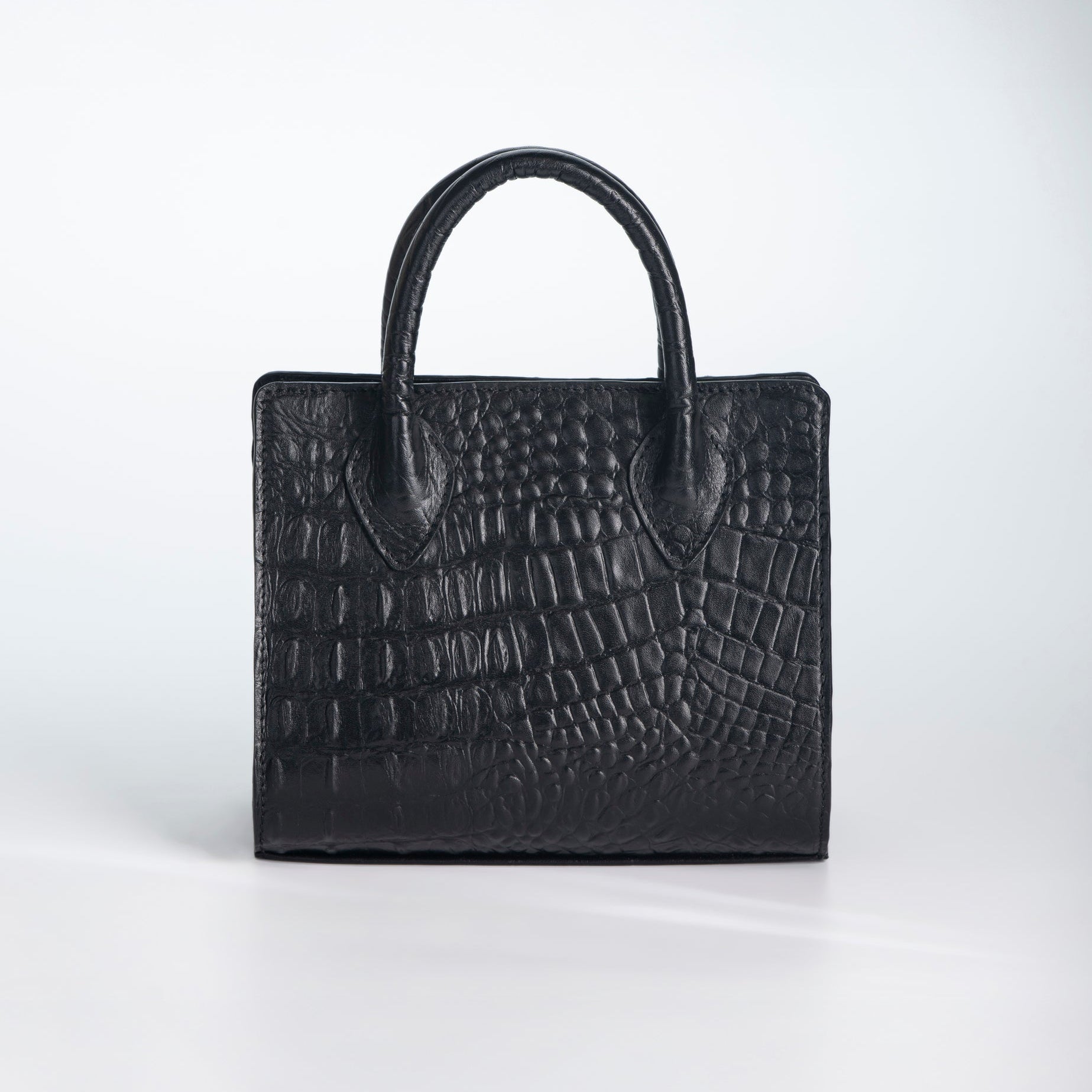 Το μαύρο κροκό δέρμα προσθέτει βάθος και ένταση, διατηρώντας την καθαρότητα του σχεδιασμού.